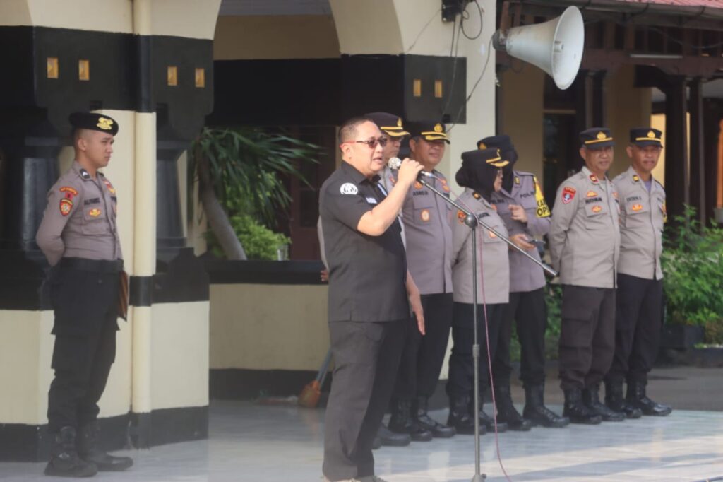 POLRESTA SERKOT_ Apel pagi personel Polresta Serkot di pimpin oleh Kasi Humas Polresta Serkot, berikan arahan serta motivasi kepada personel di lapangan hitam Polresta Serkot pada Kamis, 07/11.
