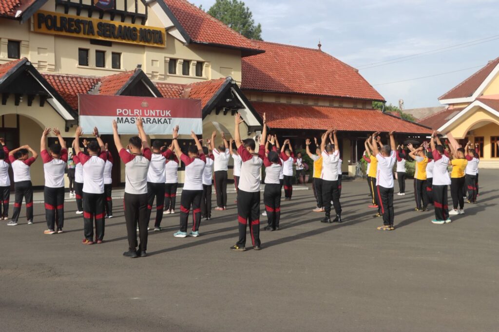 POLRESTA SERKOT_ Dalam rangka menjaga kesehatan dan meningkatkan kebugaran fisik, personel Polresta Serang Kota melaksanakan kegiatan olahraga berupa senam bersama pada Jumat, 10/04/2026.