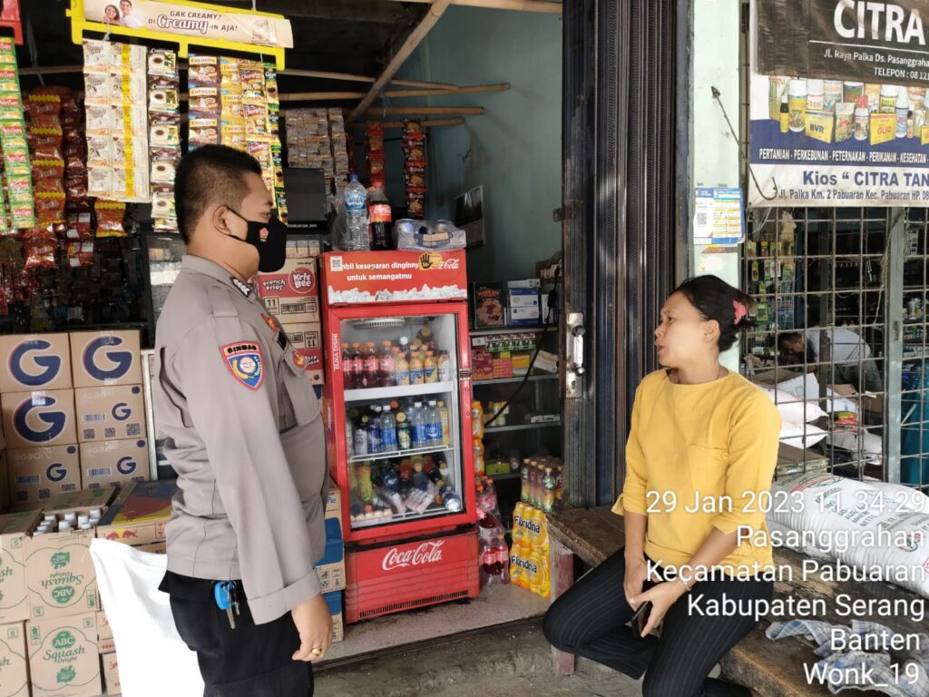Polresta Serkot | Polsek Pabuaran Polresta Serkot Polda Banten dalam hal ini Bripka Iwan Kurniawan bersama anggota melaksanakan giat patroli Ke toko Kelontong di kampung Sampiran desa Pasanggrahan Kecamatan Pabuaran, Senin,(30/01/2023).