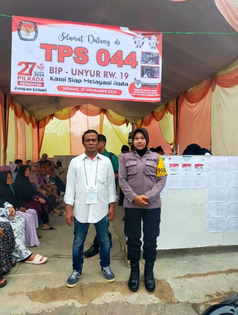 POLRESTA SERKOT_ Memastikan pemungutan suara Pilkada Serentak 2024 berjalan aman dan damai serta menjaga kelancaran proses Demokrasi, Polisi Wanita Polresta Serkot Polda Banten melakukan pengawalan dan pengamanan dalam proses pemungutan suara Pilkada Serentak 2024 di wilayah hukum Polresta Serkot pada Rabu, 27/11.