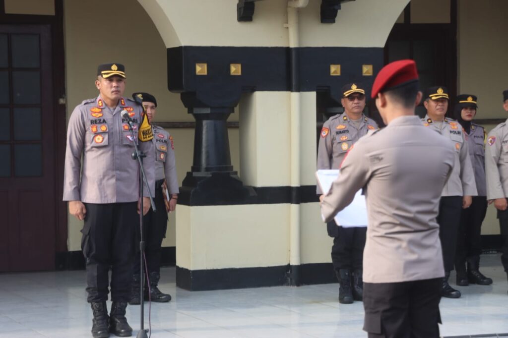 Kapolresta Serkot Kombes Pol. Sofwan Hermanto, S.I.K., M.H., M.I.K., melalui Wakapolresta Serkot Akbp. M. Reza Chairul Akbar Sidiq, S.H., S.I.K., M.H., menuturkan bahwa sudah kewajiban kita disiplin dengan laksanakan apel pagi.