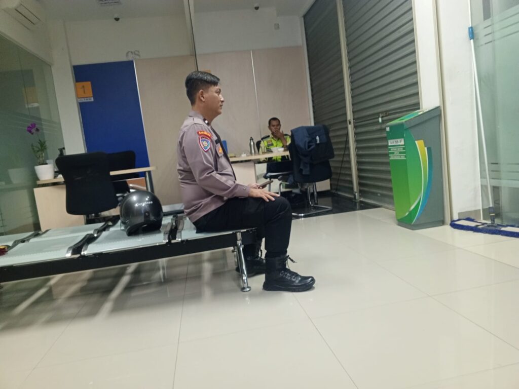 POLRESTA SERKOT_ Unit Binmas Polsek Curug Polresta Serkot Polda Banten Aipda Ikhsan Patroli sambang dan Patroli dialogis bersama Satpam Bank BJB Kcp Palima Kota Serang diJln raya Muhammad Syekh Nawawi Albantani Link Andamui Kel Sukawana Kecamatan Curug Kota Serang.
